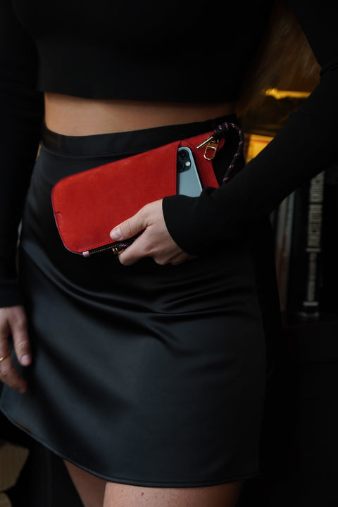 Conçue comme un accessoire mode pratique, notre pochette GASTONE est dotée de plusieurs espaces de rangement bien pensés : une poche doublée pour glisser ton smartphone, une poche centrale avec une fermeture éclair et un séparateur pour cartes intégré.
